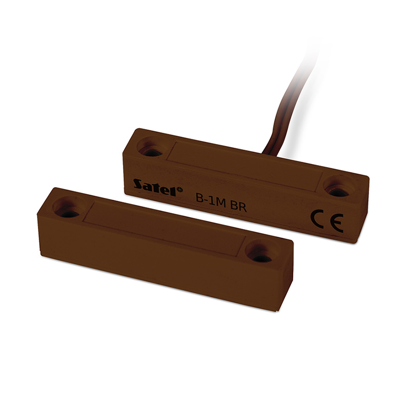 Magnetic contacts constitute basic elements of perimeter protection systems and their primary task is to detect attempts of opening doors and windows. Medium-size B-1M BR tight magnetic contacts are designed for surface mounting. They may be glued or screwed to a surface. The contacts are available in white and brown colour versions.
