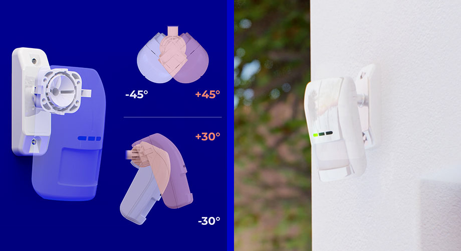 A set of mounting brackets (angle and ball-joint) that allows the detector to be precisely tilted, ensuring the detection area avoids architectural obstacles and accurately covers the protected zone.