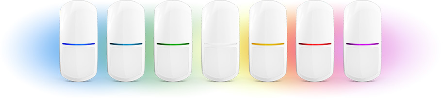 Czujki SLIM LINE oferują możliwość wyboru koloru świecenia wskaźnika LED. W zależności od modelu, wybierać można spośród czterech lub siedmiu barw.